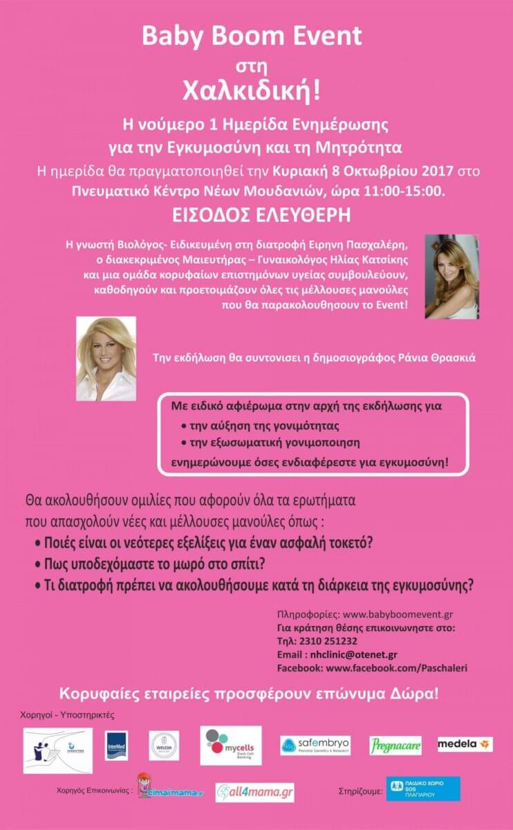 Το Baby Boom Event, η επιτυχημένη ημερίδα για την Εγκυμοσύνη και τη Μητρότητα, που μέχρι φέτος παρουσιαζόταν στη Θεσσαλονίκη και τον Μάιο για πρώτη φορά έκανε την εμφάνισή του και στην Αθήνα, τώρα και στη Χαλκιδική!