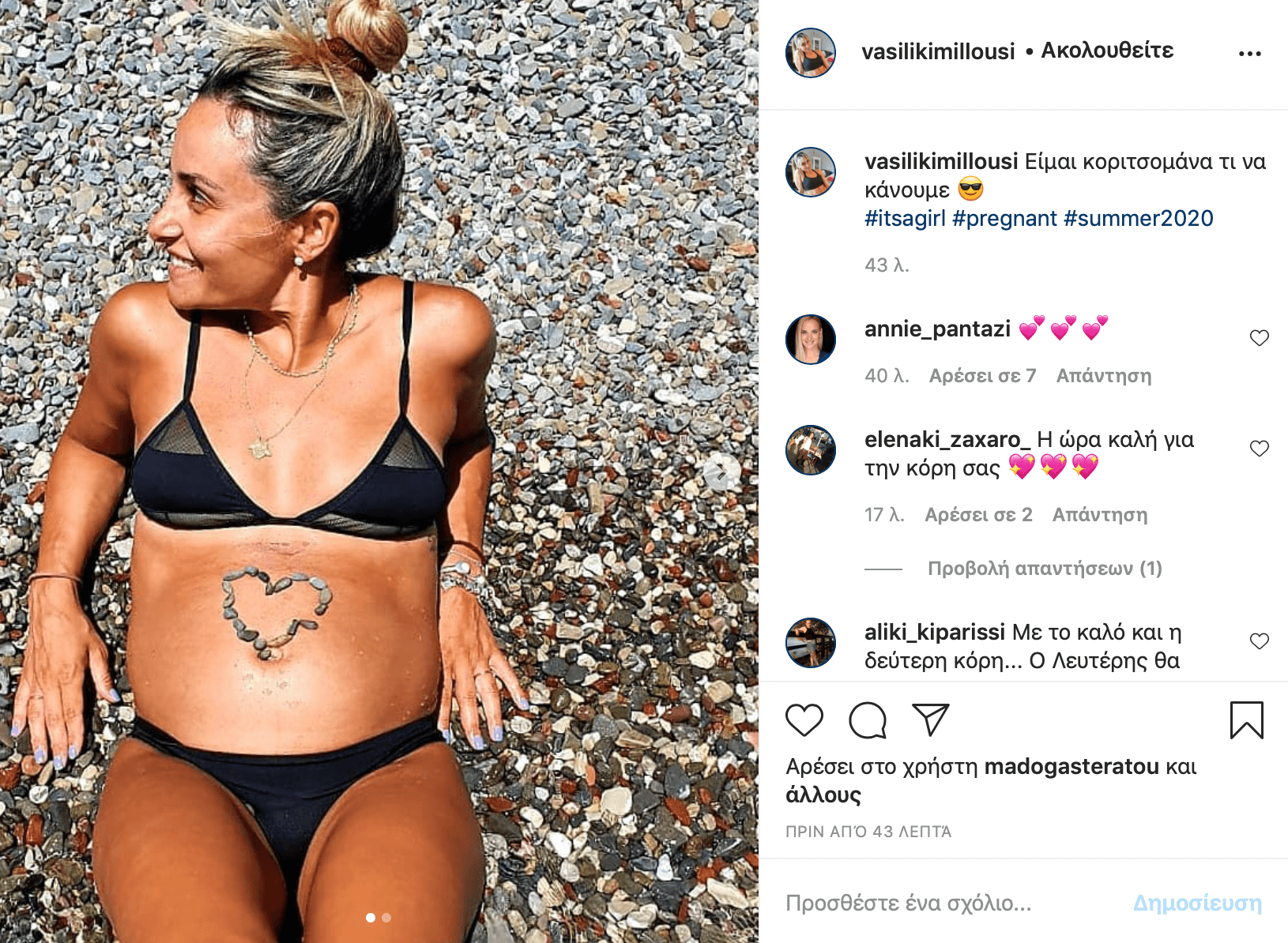Bασιλική Μιλούση: Ανακοίνωσε το φύλο του δεύτερου μωρού της στο instagram