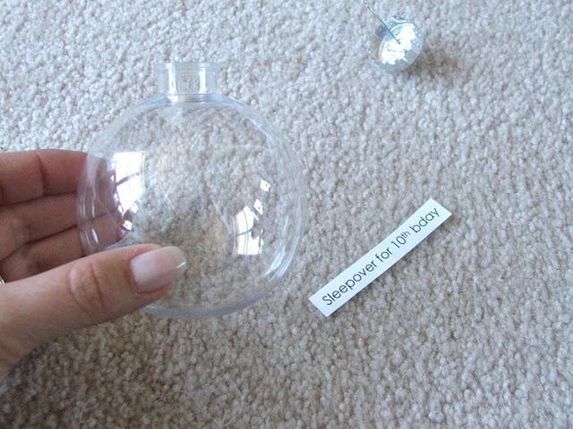 Γράψτε την ευχή στην κόλλα αναφοράς , κόψτε την και βάλτε την μέσα στη διάφανη μπάλα
