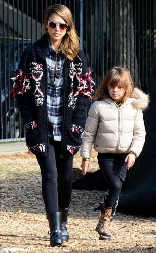 Ψάχνετε τι να φορέσετε όταν επισκέπτεστε την παιδική χαρά; H Jessica Alba έχει τη λύση! Ένα καρό πουκάμισο, μαζί με μια μάλλινη ζακέτα και ένα ζευγάρι χαμηλές μπότες είναι ακριβώς ότι χρειάζεστε.