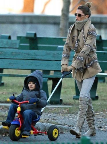 Ζιβάγκο πουλόβερ, ψηλές μπότες, ζακέτα φορεμένη σαν παλτό – όλα σε γήινους τόνους – για την εντυπωσιακή μαμά, Gisele Bundchen.