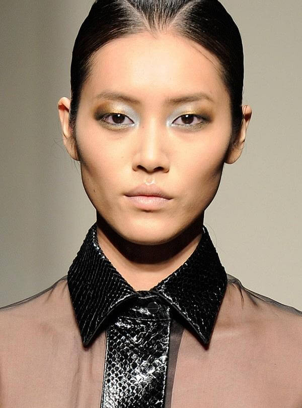 Σκιές περλέ, μπρονζέ, χρυσές φοριούνται ξανά με τα χείλη να μένουν φυσικά σε τόνους nude και ροζ.