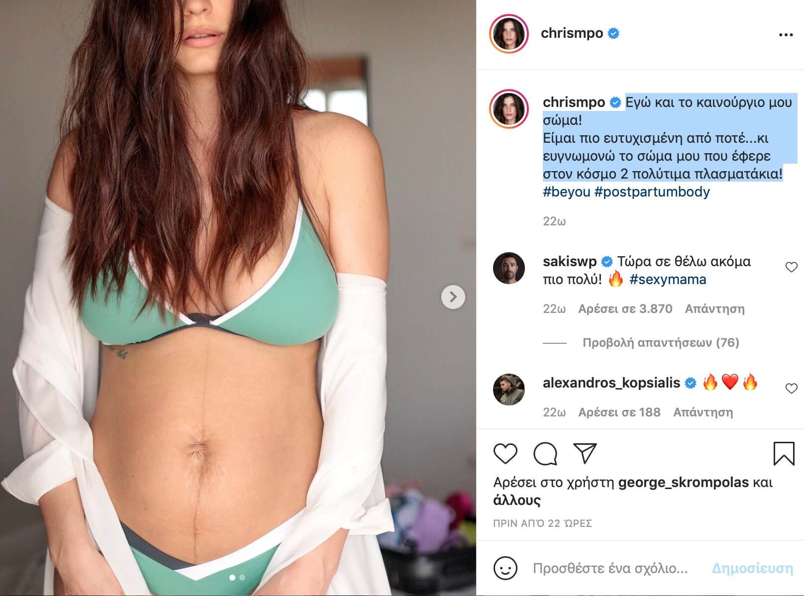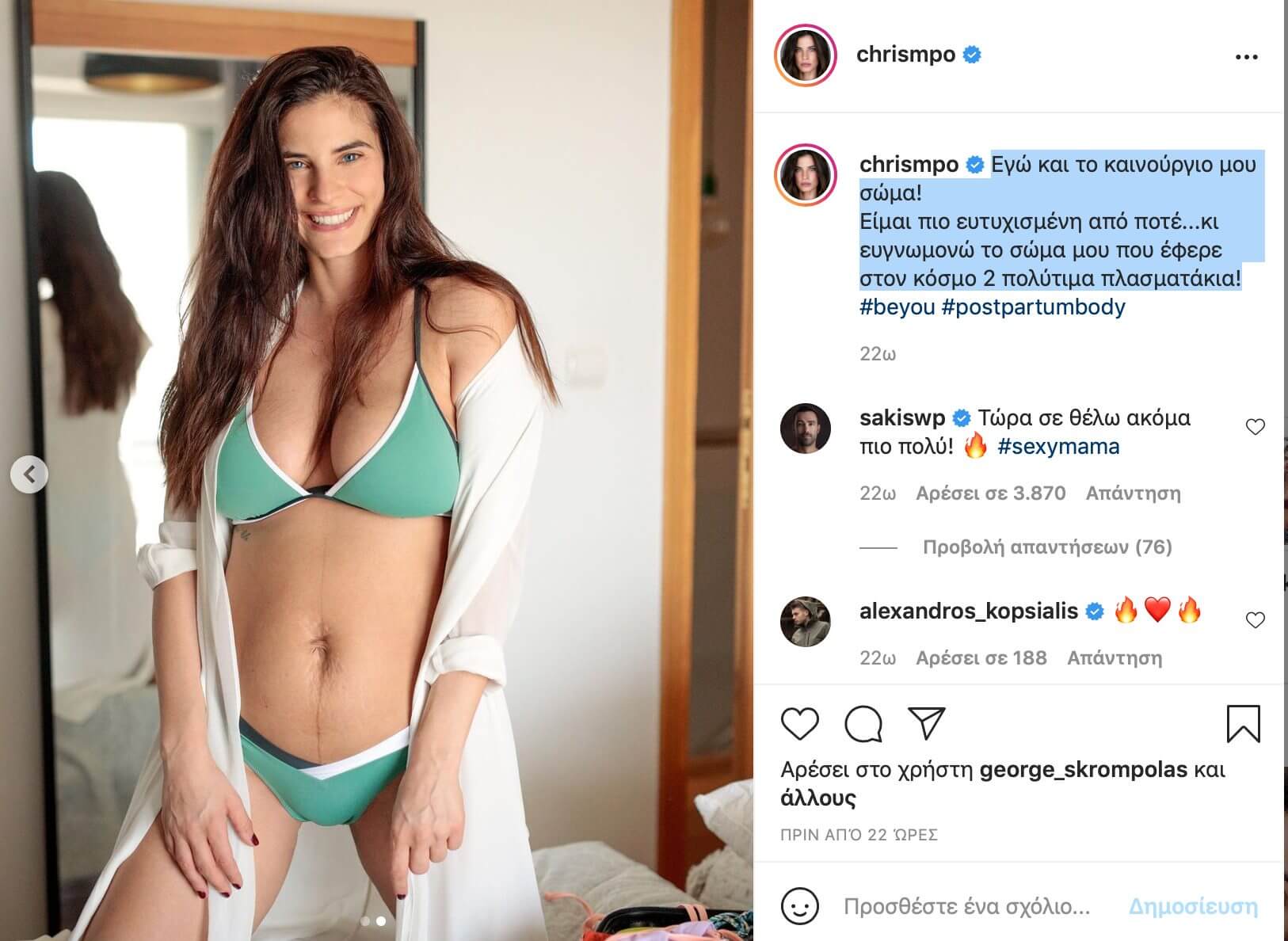 Ενάμιση περίπου μήνα μετά τη γέννηση των διδύμων και η Χριστίνα Μπόμπα δεν διστάζει να δείξει το σώμα της στον προσωπικό της λογαριασμό στο instagram.